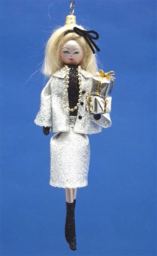 De Carlini Blonde in Silver Suit with Gifts Ornament