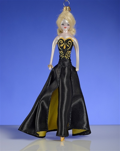 De Carlini Blonde Lady in Black and Yellow Dress Ornament