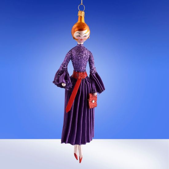 De Carlini Elegant Lady in Purple Dress with Red Purse Ornament