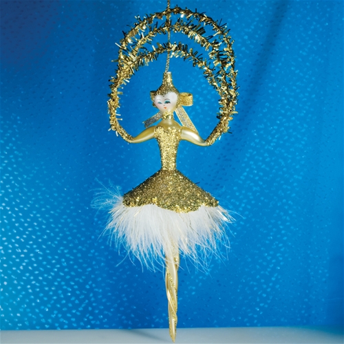 De Carlini Gold Pompon Feathers Lady Christmas Ornament
