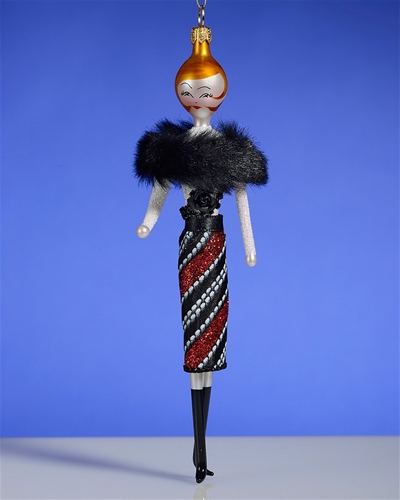 De Carlini Lady in Red Suit and Faux Fur Hat Christmas Ornament