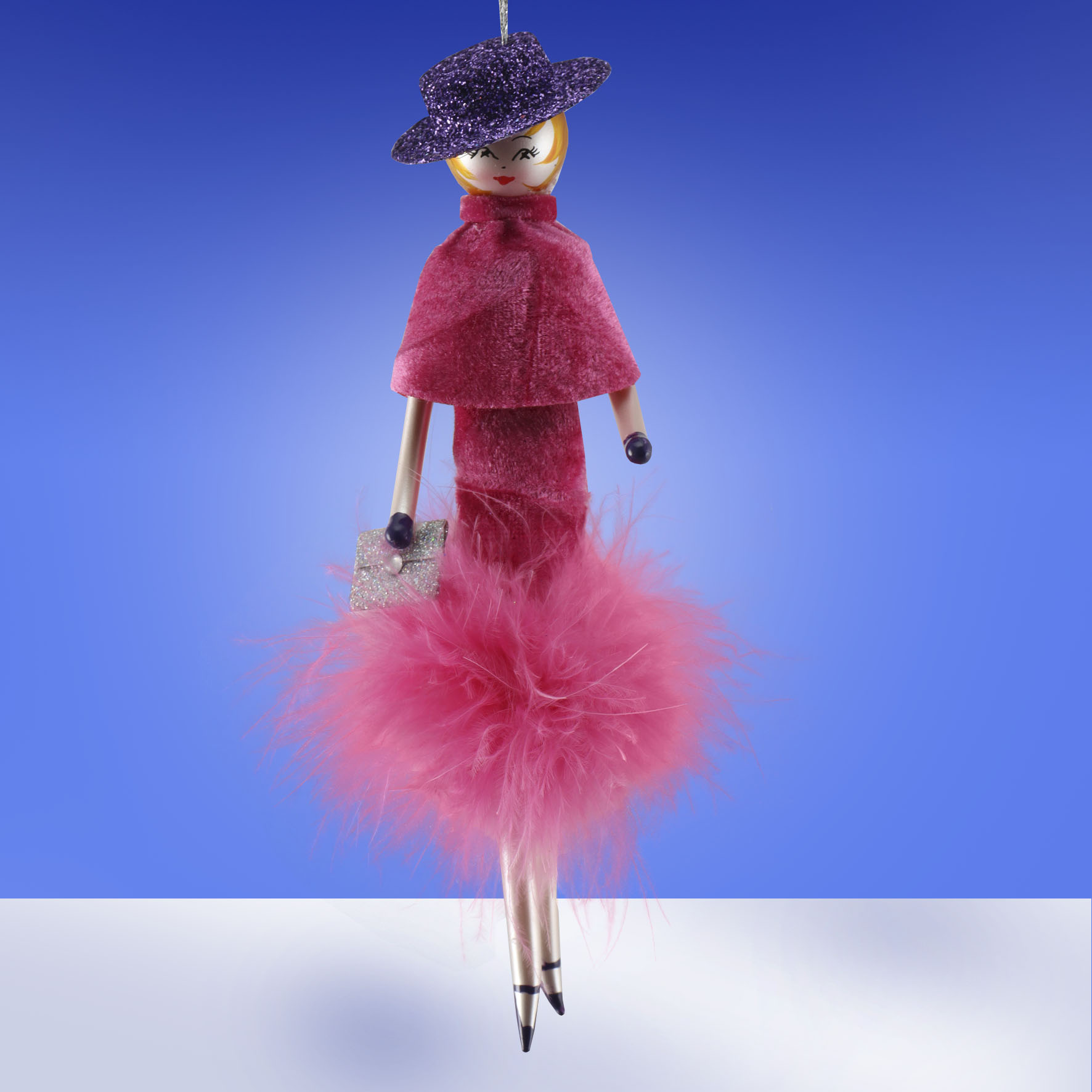De Carlini Lady in Fucsia Dress and Faux Fur Ornament
