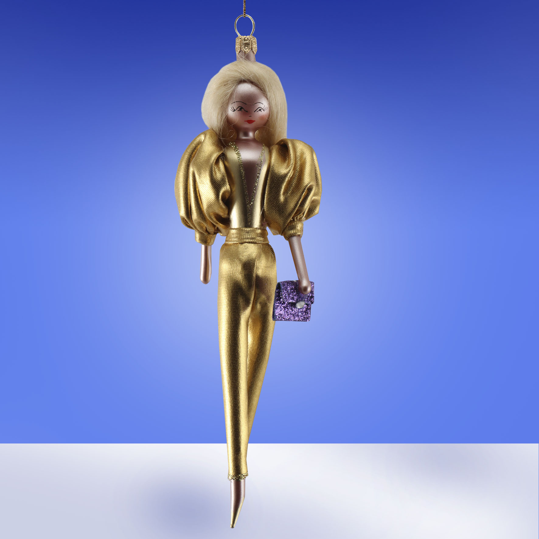 De Carlini Lady in Gold Suit Large Sleeves Ornament