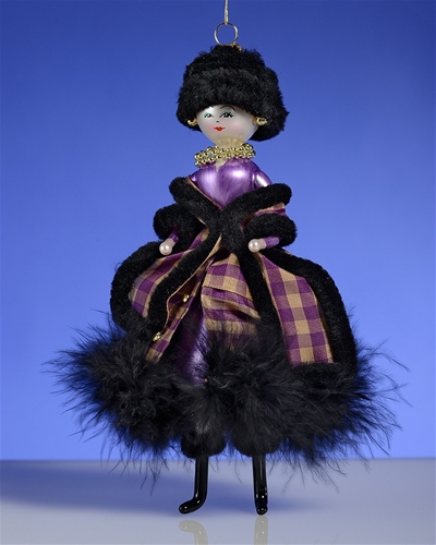 De Carlini Lady in Teal Skirt and Plaid Jacket Ornament
