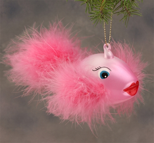 De Carlini Blue Fish Pink Feathers Christmas Ornament