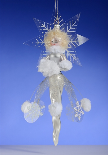 De Carlini Snow Flake Princess with Pompons Christmas Ornament