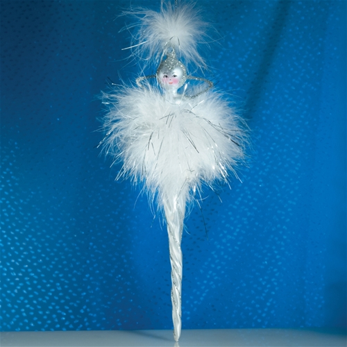 De Carlini White Silver Lady with Collar Christmas Ornament