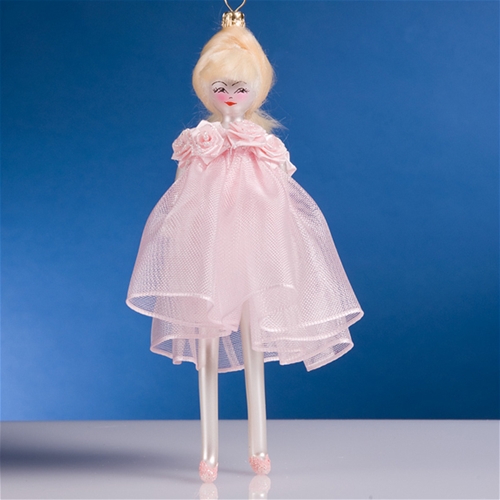 De Carlini Blonde in Pink Dress with Roses Ornament