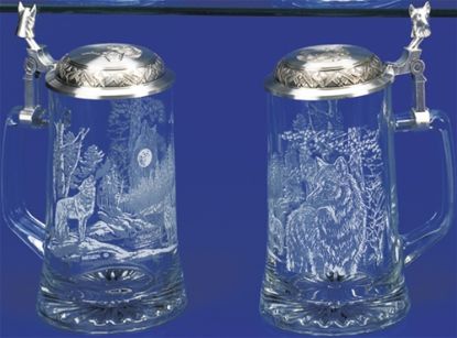 James Meger Timber Wolf Glass Etched German Beer Stein, Each