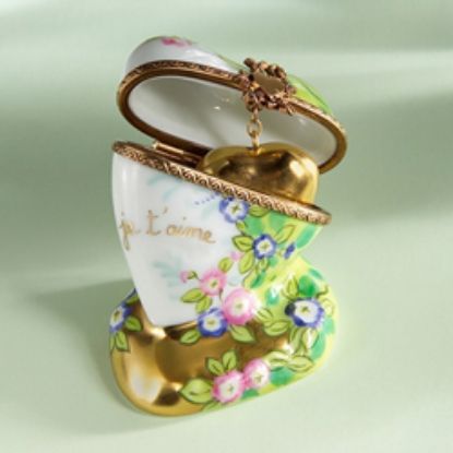 Limoges " Je T 'aime" Gold Heart on Heart with Stand Box