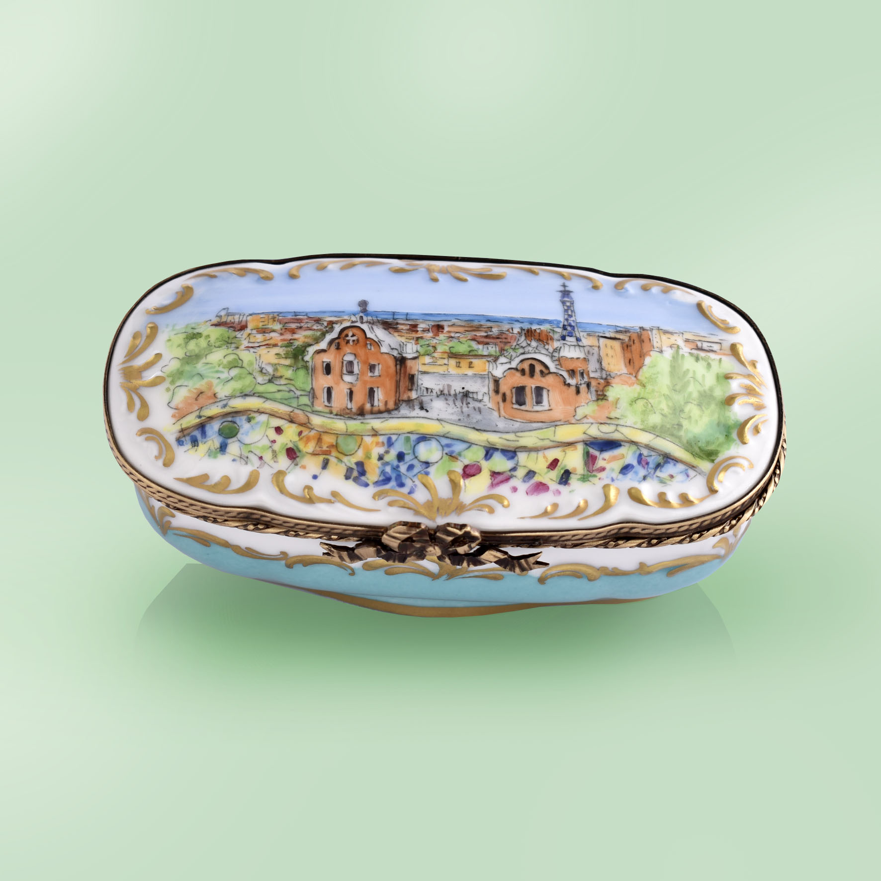 Limoges Barcelona Artistic Painting Box with Gold Leaf Accents