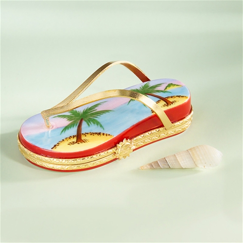 Limoges Beach Sandal with Palm Tree Box