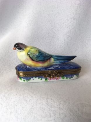 The Limoges Mother and Baby Parrot Box is painted in the traditional parrot colors of green, red and yellow!