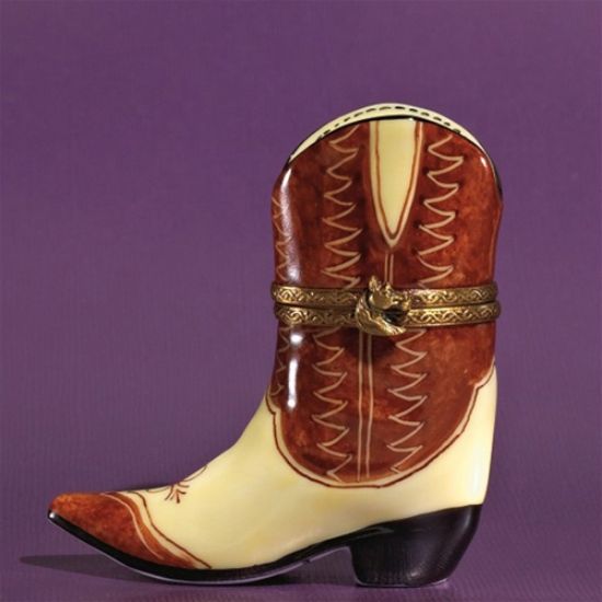 Limoges Brown and Ivory Western Cowboy Boot Box