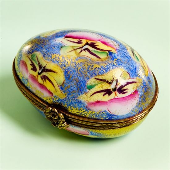 Limoges Chamart Egg with Pansies Box