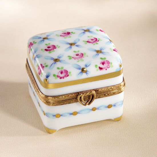 Limoges Chest with Roses and Blue Ribbon Box