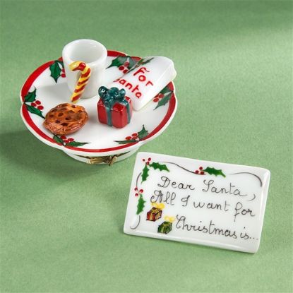 Limoges Santa Cookies Plate Box with Merry Christmas Card