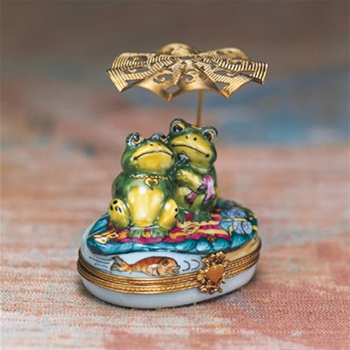 Limoges Couple of Frogs under Parasol Box