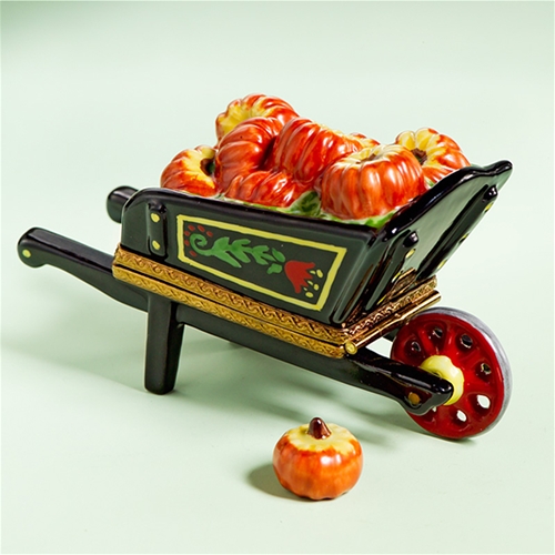Limoges Decorated Wheelbarrow with Pumpkins Box