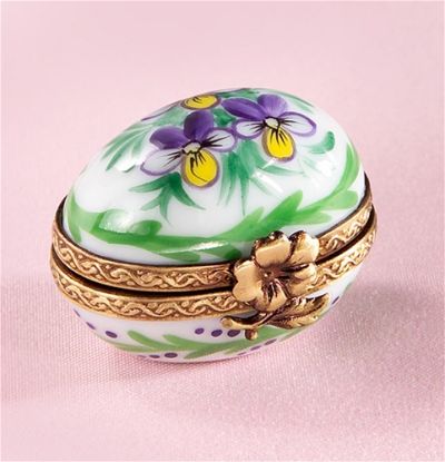 Limoges Faberge Style Pink Roses with a Basket of Flowers Box