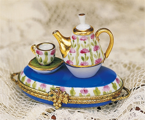 Limoges Floral Coffee Pot and Cup on Tray Box
