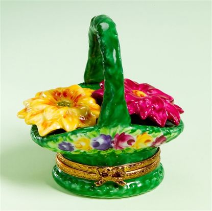 Limoges Green Basket of Flowers Box