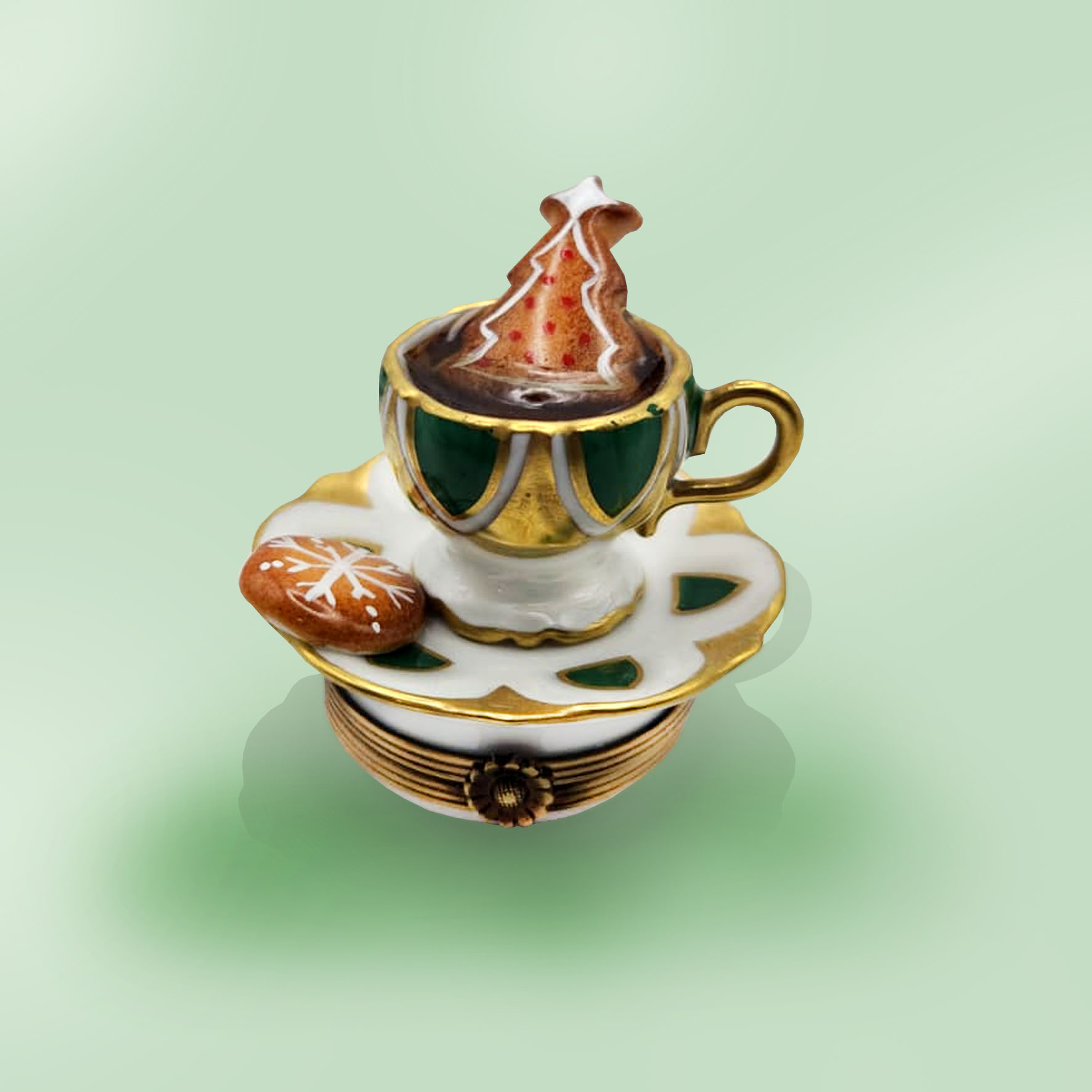 Limoges Holiday Cup and Saucer with Gingerbread Tree Cookie Box