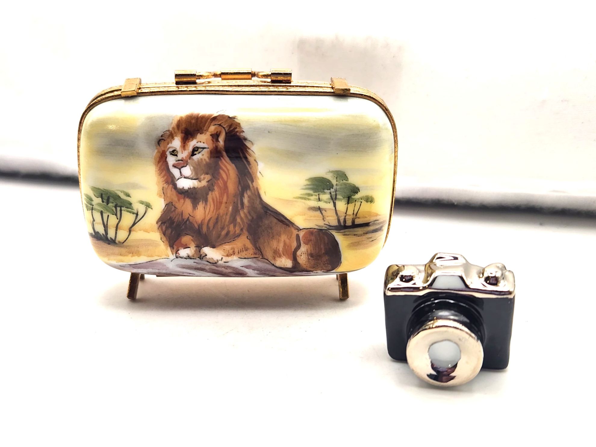 Limoges Lion Safari Suitcase Box with Camera