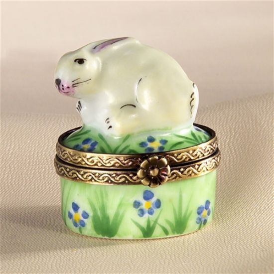 Limoges Mini White Rabbit on Grass Box