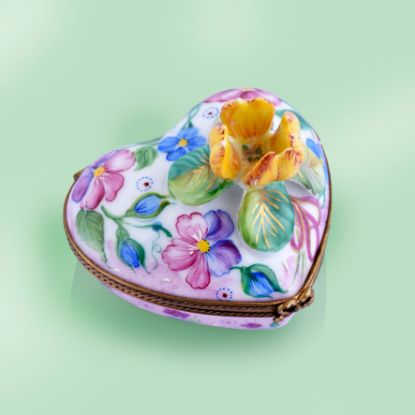 Limoges I Love you Artistic Heart with a Daisy on the Wind Box