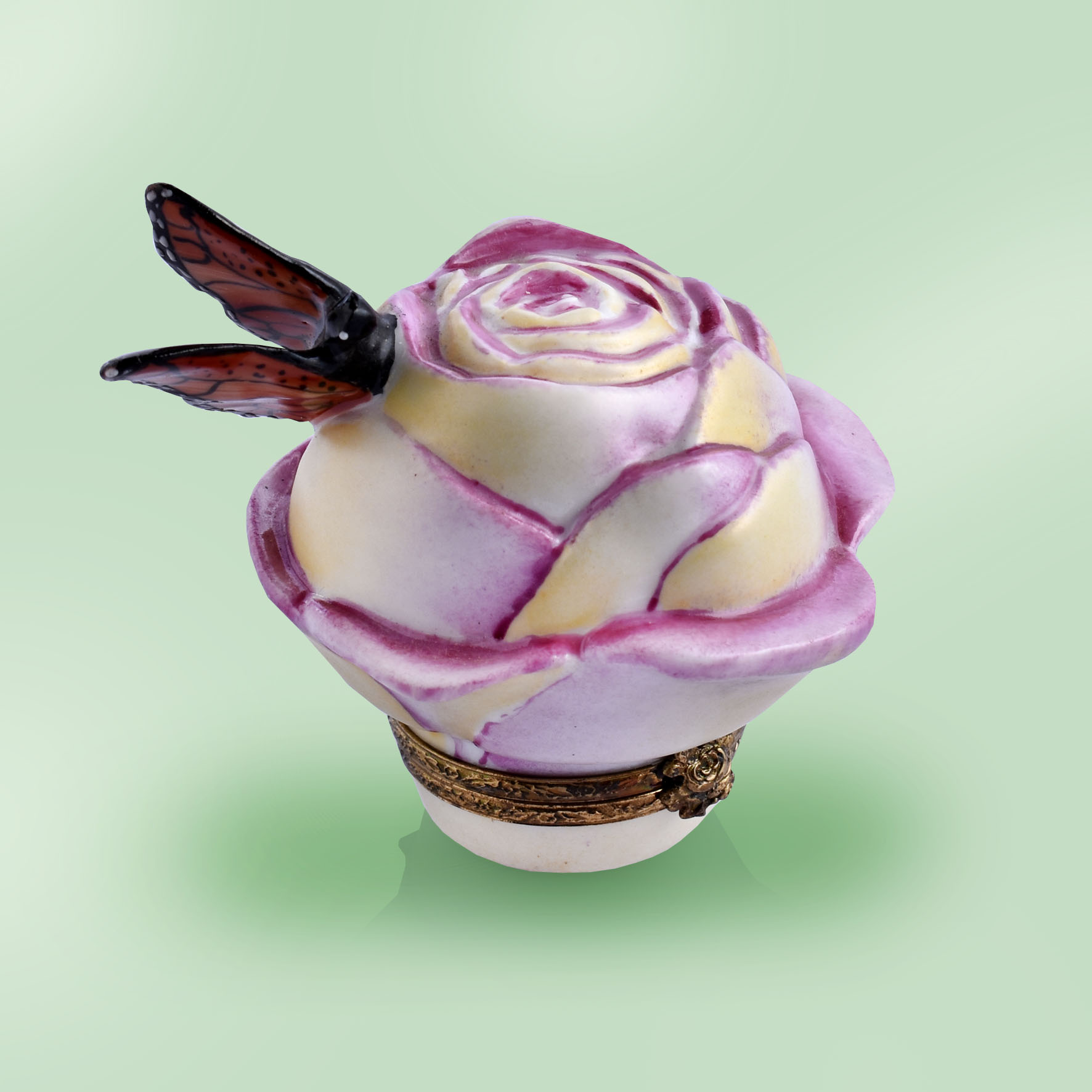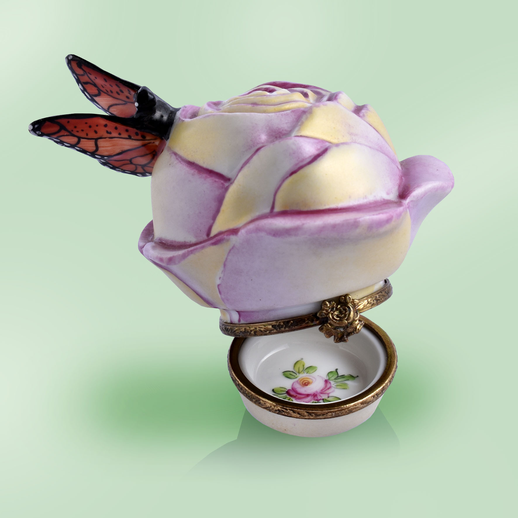 Limoges Pink Rose with Monarch Butterfly Box