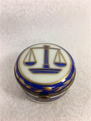 Limoges Scales of Justice Round Blue Box