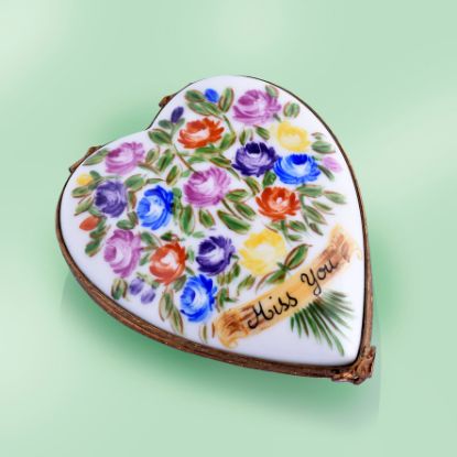 Limoges Blue Heart with Yellow Roses I Love you Box