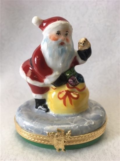 Limoges Santa with Bag of Toys and Teddy Box