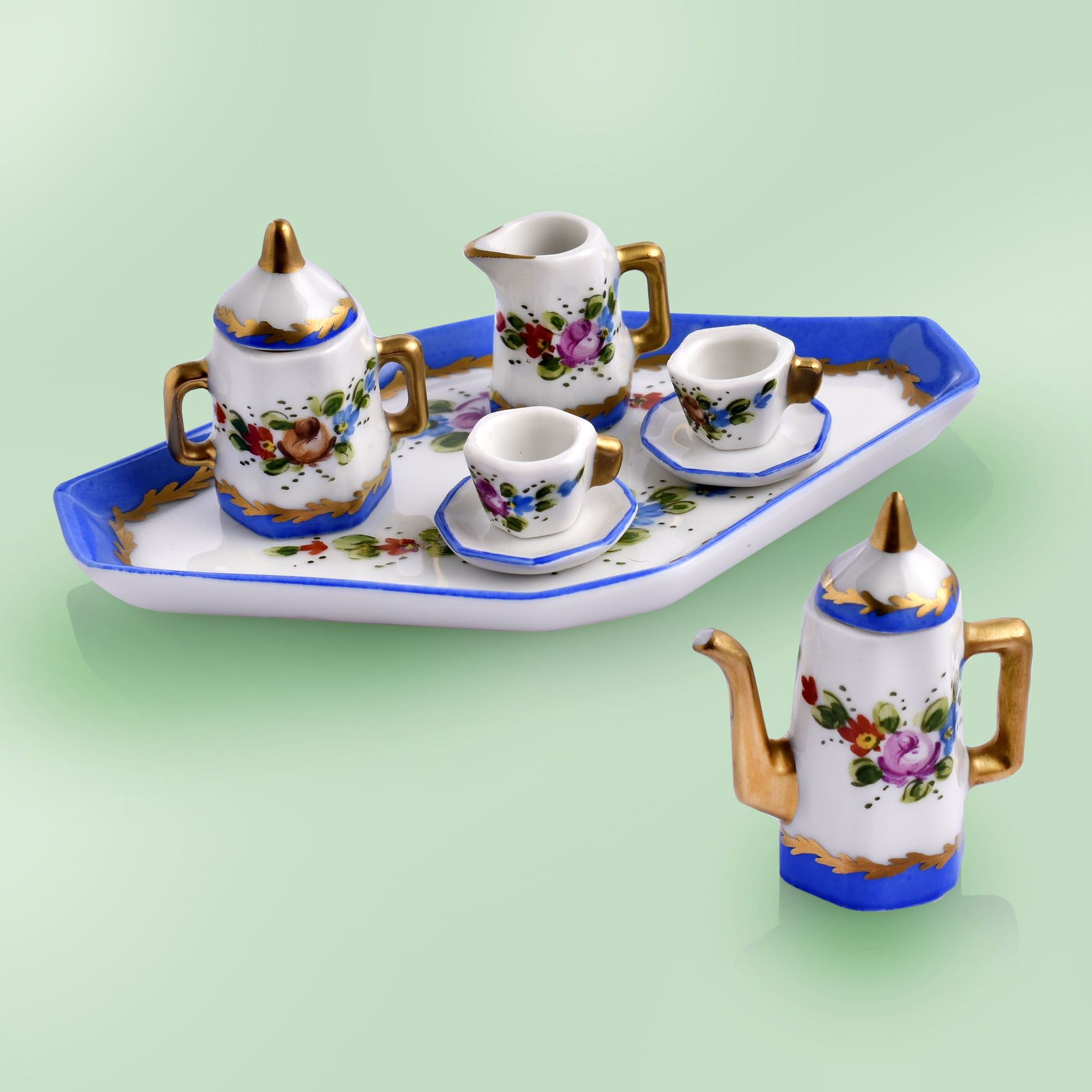 Limoges Tea Service with Sevres Blue, Gold and Roses