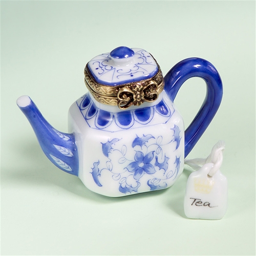 Limoges White Blue Flowers Teapot Box with Tea Bag