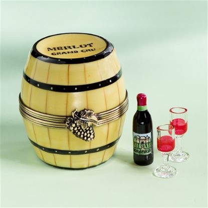Limoges Merlot Gran Cru Wine Barrel with Bottle and Glasses Box