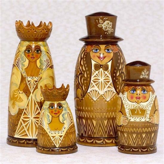 Russian Hand Carved Wedding Dolls. Set of 4.