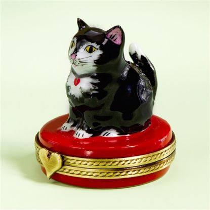 Limoges Halloween Black Cat on Pumpkin Basket Box with Candy